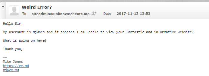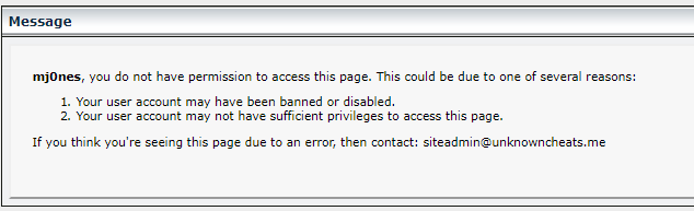I then decided to take it upon myself to log in to several of my banned UnknownCheats accounts and verify that no ban reason is visible to the banned end user (covering my bases).